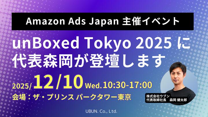 2025年12月10日(水)に開催されるAmazon Ads Japan主催の「unBoxed Tokyo 2025」に弊社代表の森岡が登壇することが決定しました。ウブンは14:30〜15:00のセッション「プランニングから効果測定まで:パートナーと共に描くAIとフルファネル戦略で実現する成長」に登壇します。
