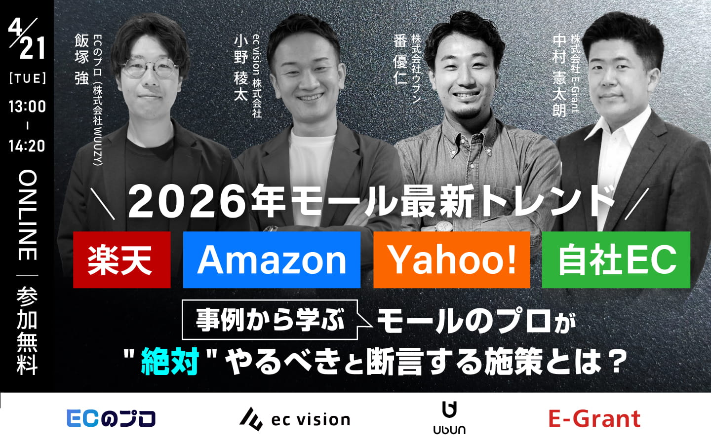 Amazonに特化したマーケティング・テクノロジーによって、ECブランドの成長を実現するグロースパートナー株式会社ウブン(本社:東京都港区、代表取締役社長:森岡健太郎)は、2026年4月21日(火)に開催される「\2026年 モール最新トレンド/ 事例から学ぶ、モールのプロが ""絶対"" やるべきと断言する施策とは?」に登壇することが決定しました。当社は「Amazonデータは"モール施策"で終わらせない。ブランド成長のためのLTV戦略」をテーマに登壇します。ぜひ、ご参加ください。