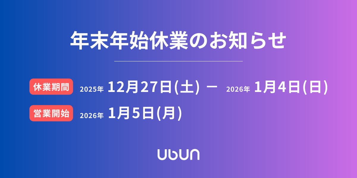平素は格別のお引き立てを賜り、厚く御礼申し上げます。 株式会社ウブンでは、誠に勝手ながら下記の期間を年末年始休業とさせていただきます。